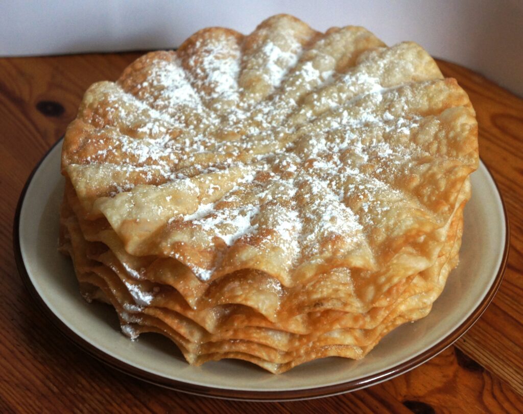 Szwajcaria ma własne tradycyjne wypieki karnawałowe i każdy region broni ich z dumą. Najbardziej rozpoznawalne są Fasnachtschüechli. To cienkie, chrupiące placki ciasta smażone w głębokim tłuszczu i posypane cukrem pudrem. Są lekkie, łamliwe i bardzo alpejskie w charakterze. W niektórych regionach nazywa się jeKnieplätzli, bo dawniej rozciągało się ciasto na kolanie.